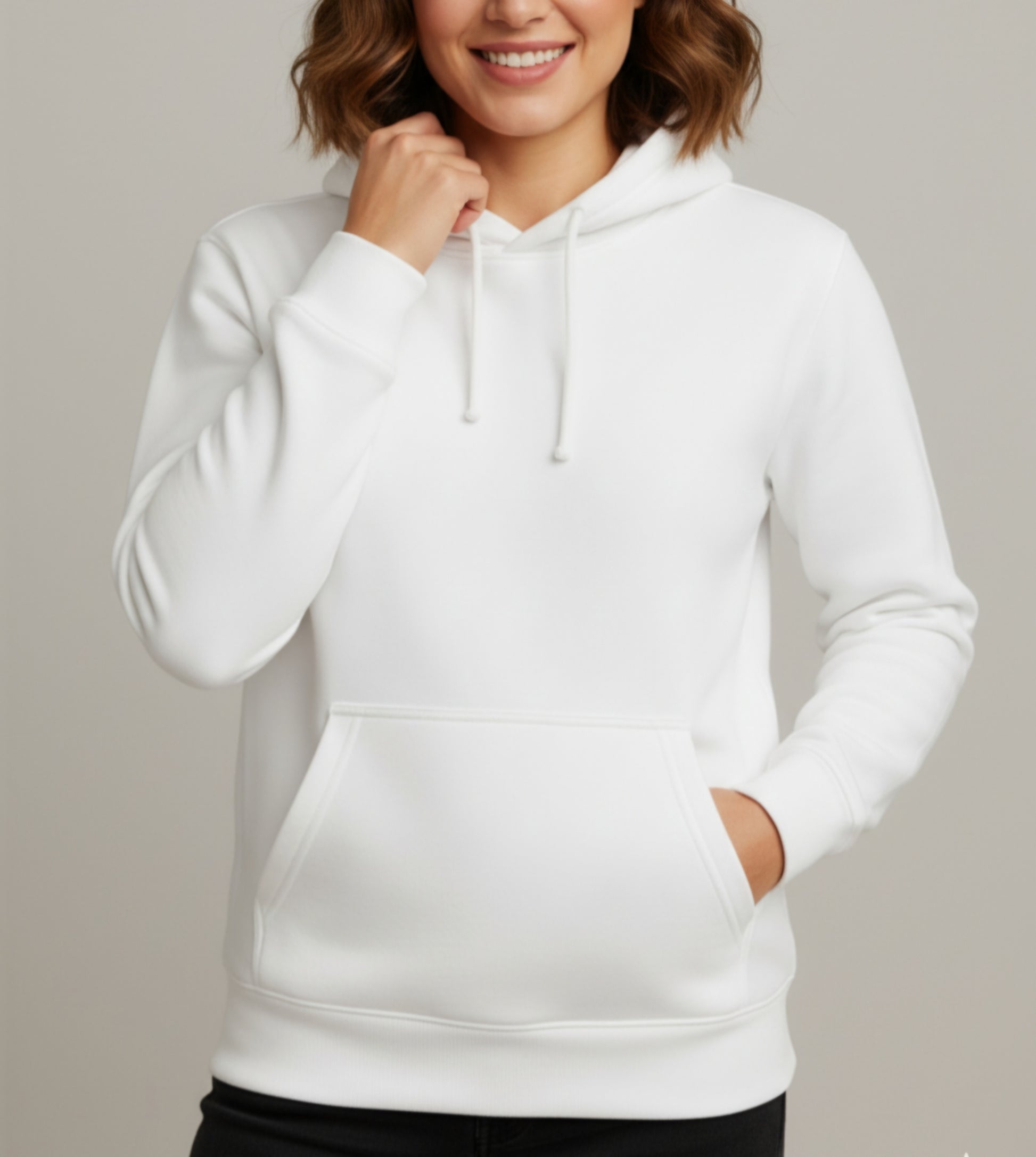 Beyaz Kapüşonlu Hoodie Sweatshirt | 3 İplik, Kalın Kumaş, Kışlık, Şardonlu Yapı | Regular Fit | Unisex Model